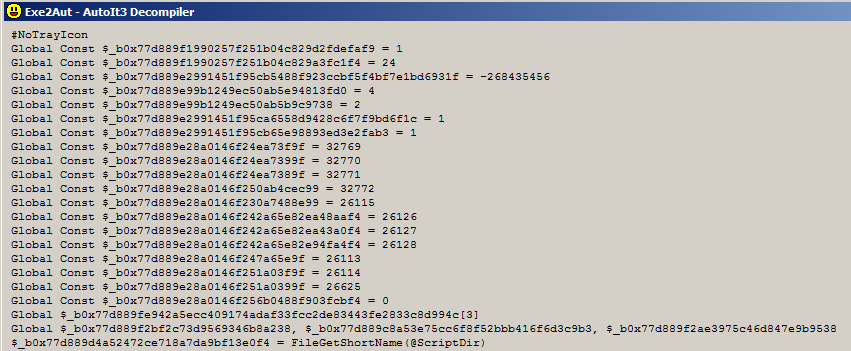 Imagine this scenario: you’re researching a malware sample which starts its execution with unpacking the archive (usually RAR or ZIP one) which came with a suspicious email and launching an AutoIT script stored inside the archive. You start analyzing this script and get stuck: its size is more than 150MB! What do you do?