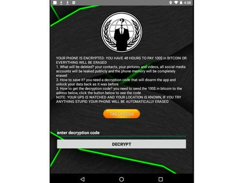 Fig 4: Mobile malware ransom note (image by DomainTools)