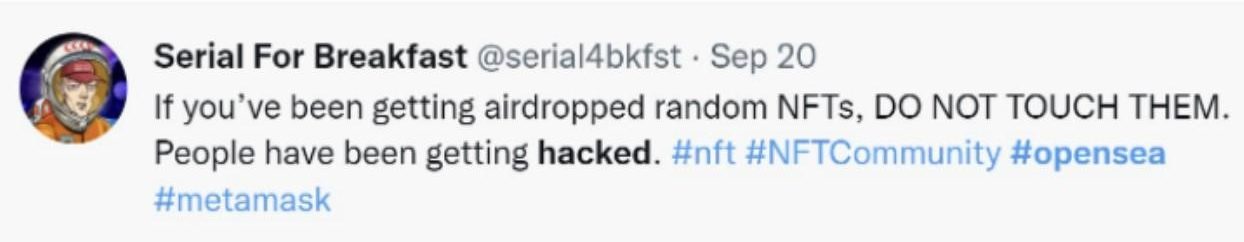 The reports speculated that an attack could start when you receive a free gift from a stranger, or a link to OpenSea art: