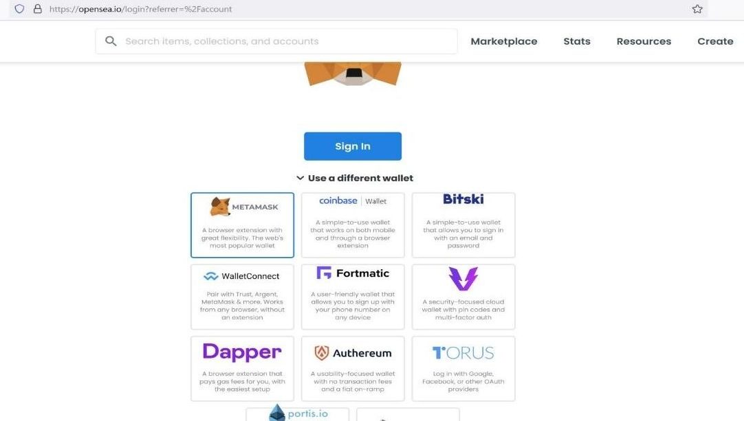 The default wallet and the most popular one is MetaMask, so we chose that one in our research, and downloaded the browser extension to open a wallet.