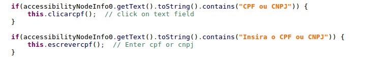 The last action left is to enter the payment beneficiary. The malware searches for the CPF/CNPJ (Brazilian taxpayer identification number) field: