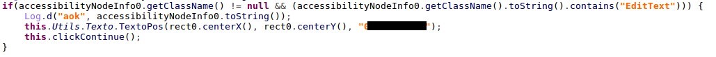 The malware clicks on it by using the following Accessibility actions: